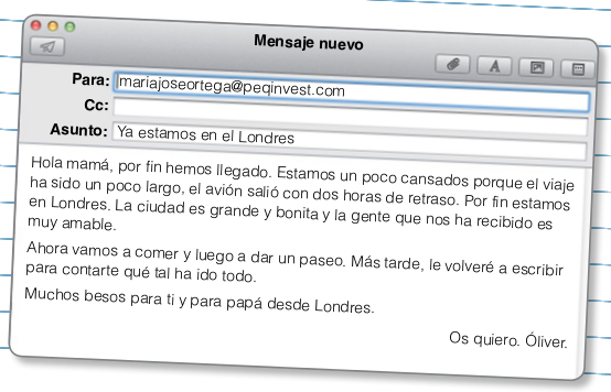 2.º Escribir la dirección de correo electrónico de la persona a la que le quieres hacer llegar el mensaje (un amigo, un familiar