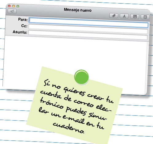 Si no quieres crear tu cuenta de correo electrónico puedes simular un e-mail en tu cuaderno.