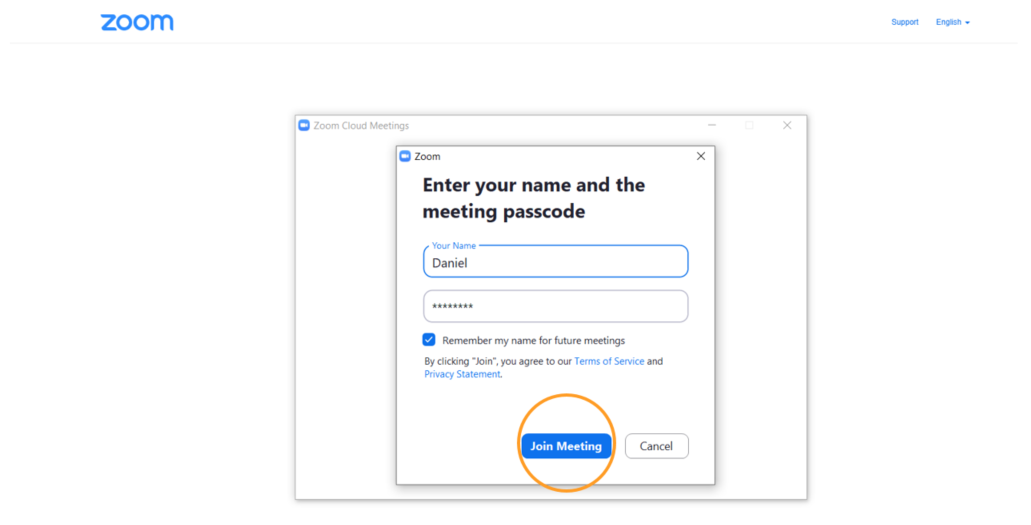 Here you will have to add the password if this is how the teacher has set up the meeting room and click on ENTER again.
