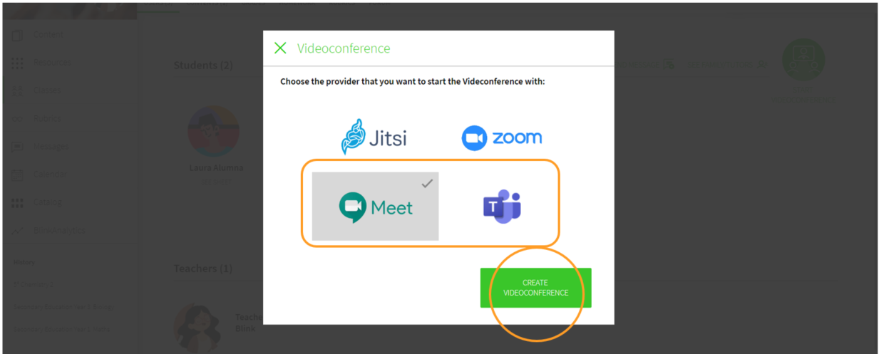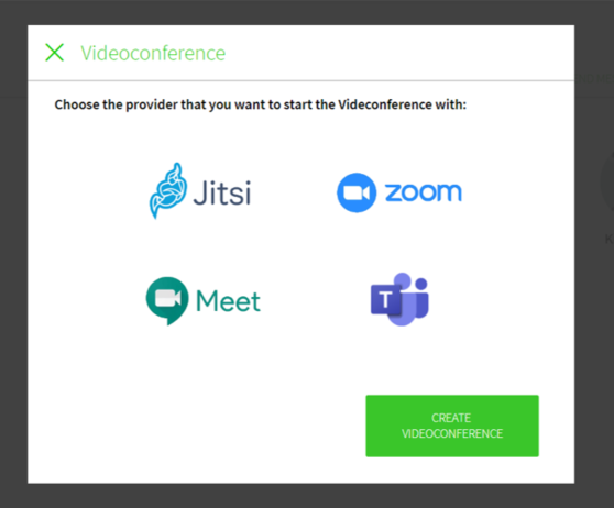 Select START VIDEOCONFERENCE in the third option for Google or in the fourth option for Microsoft.