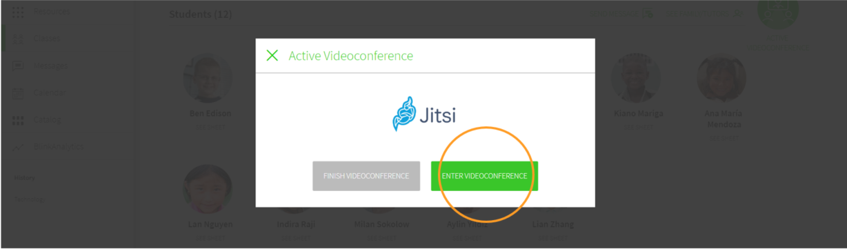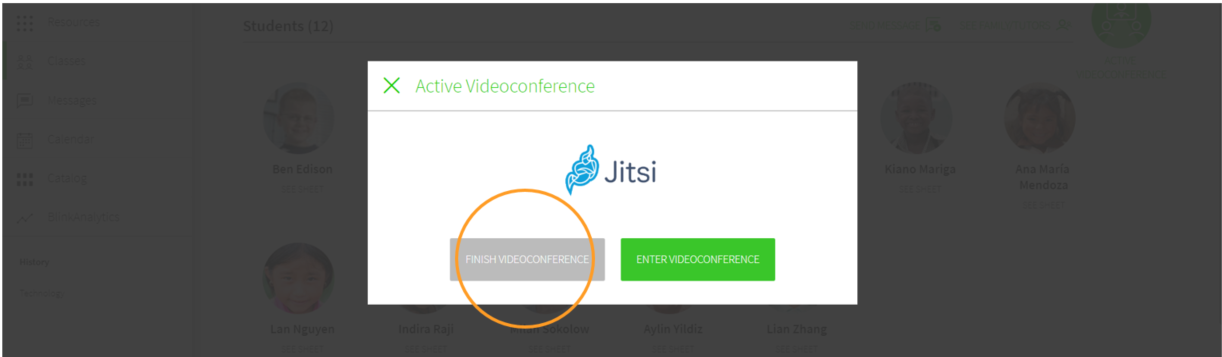 When you are done, go back to BlinkLearning and click on END VIDEOCONFERENCE