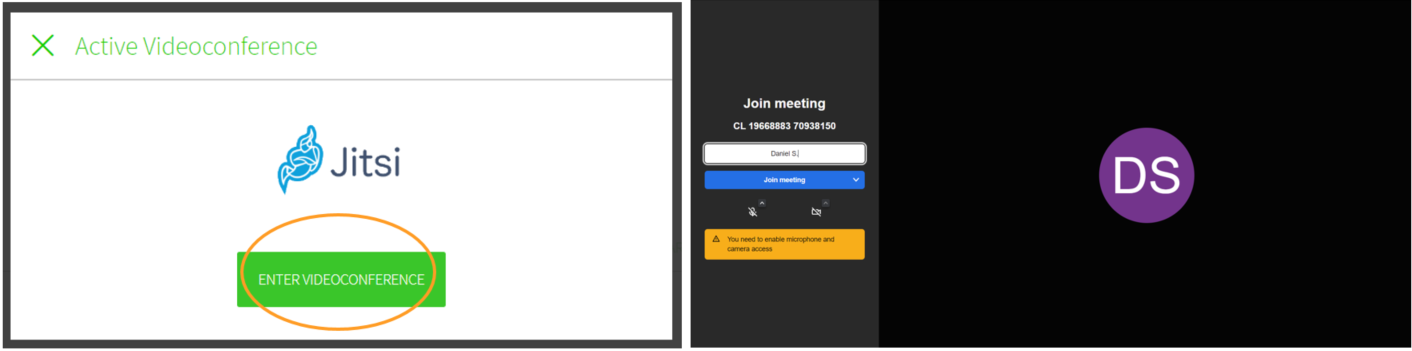 Then click on ENTER VIDEOCONFERENCE to also access the meeting.