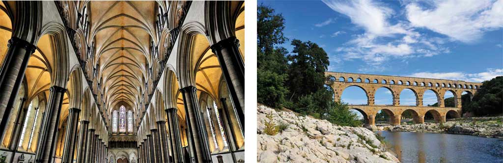 Fijate en la imágenes y busca en internet o en libros de arte o arquitectura distintos tipos de arcos que podemos encontrar en las estructuras abovedadas. ¿De qué tipo son los esfuerzos a los que se ven sometidos?