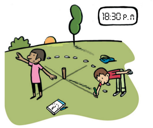 1. Jon fue marcando con piedrecitas, cada hora, el extremo de la sombra del palo. Comenzó a las 9 de la mañana. ¿A qué hora puso la quinta piedra?