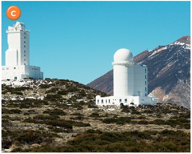 1. En las islas Canarias se construyeron los edificios de la imagen C. Dentro tienen telescopios gigantes. Investiga y escribe qué es un telescopio y para qué sirve.