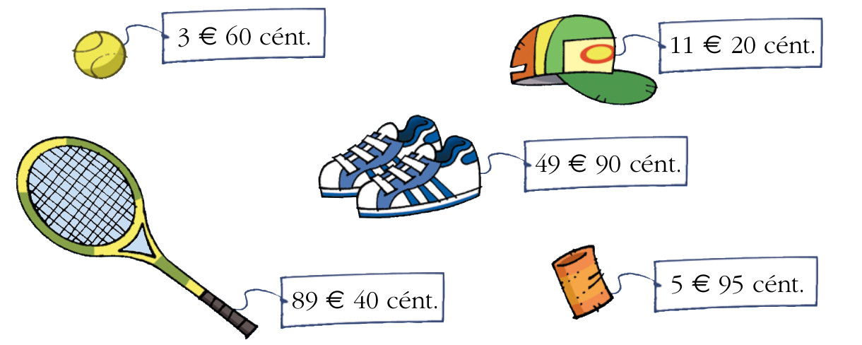 Expresa con un número decimal el precio de estos artículos y contesta: