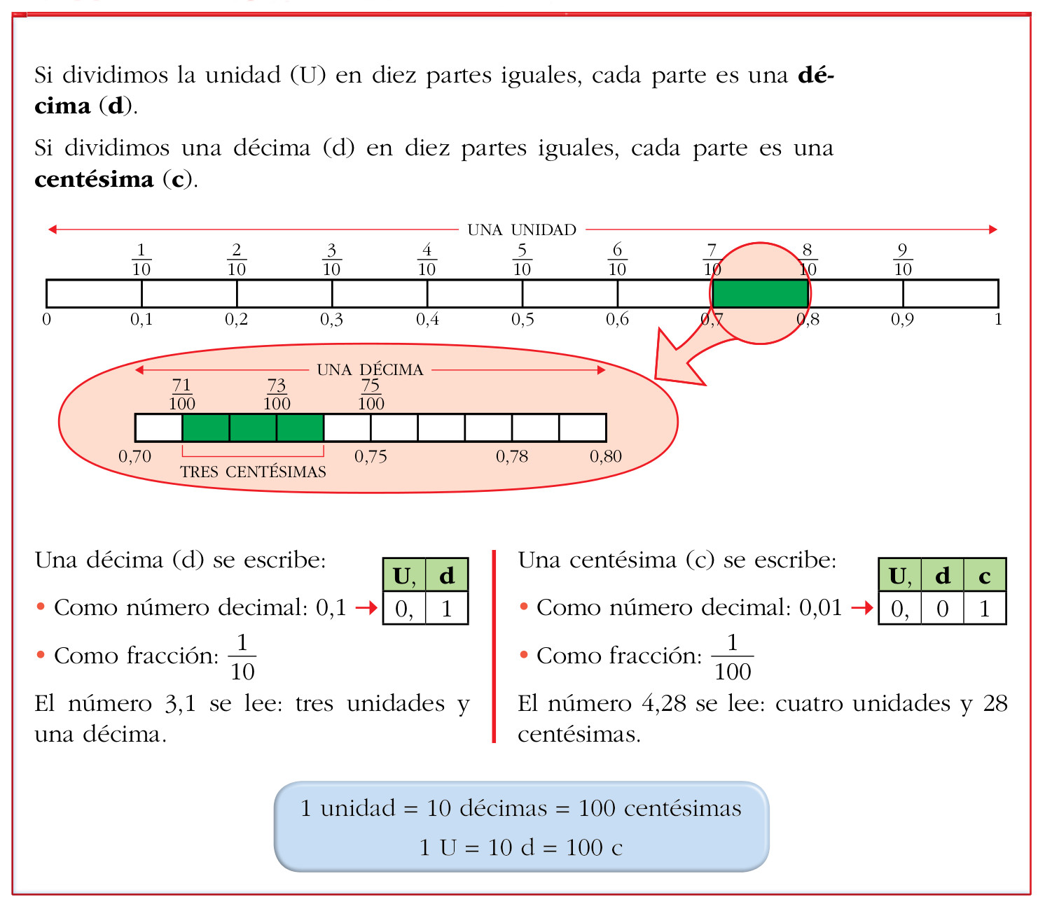 Las décimas y las centésimas