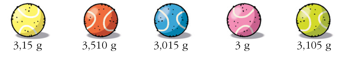 1. Ordena los pesos de estas pelotas de mayor a menor: