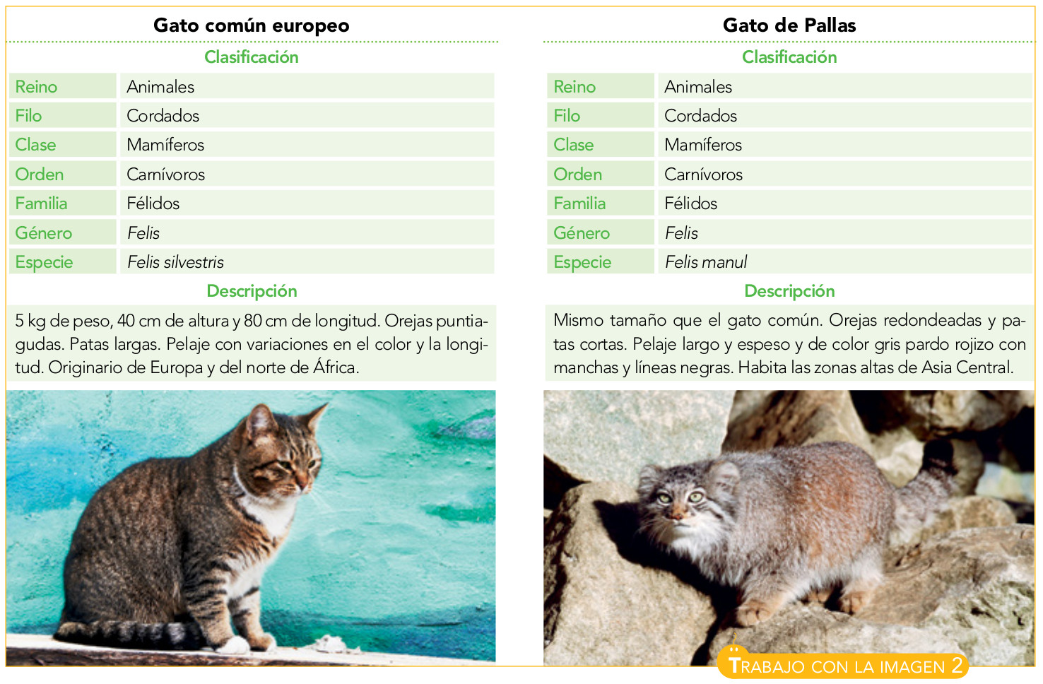 - La primera palabra comienza con mayúscula y es el nombre del género al que pertenece la especie. En el caso del gato, el género es Felis y lo comparte con especies parecidas.