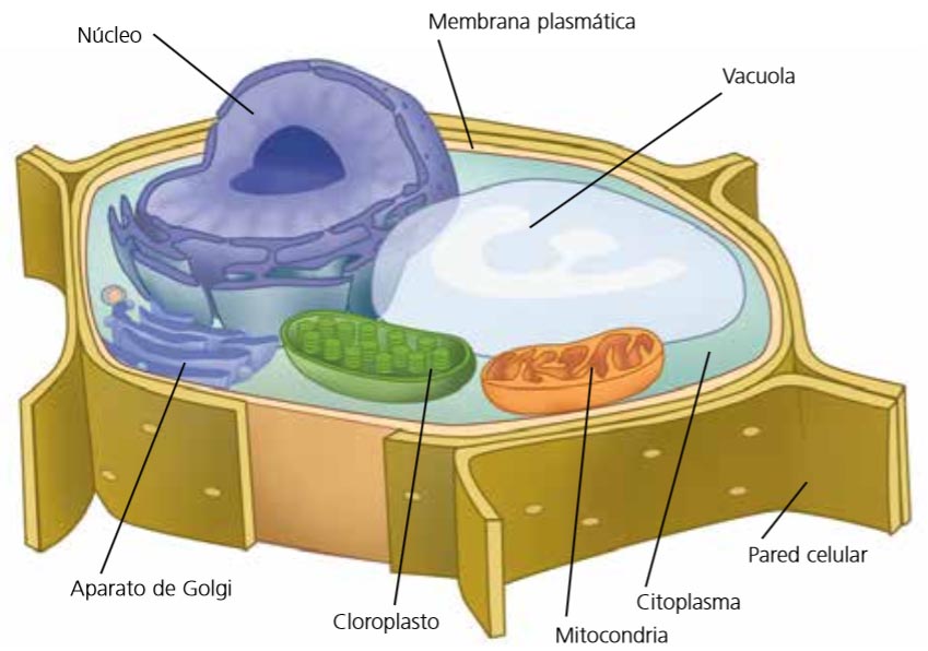 Es similar a la animal, pero presenta algunas características propias: además de la membrana plasmática, tiene otra envoltura rígida –la pared celular– que está compuesta de celulosa, una sustancia que le confiere protección y soporte.
