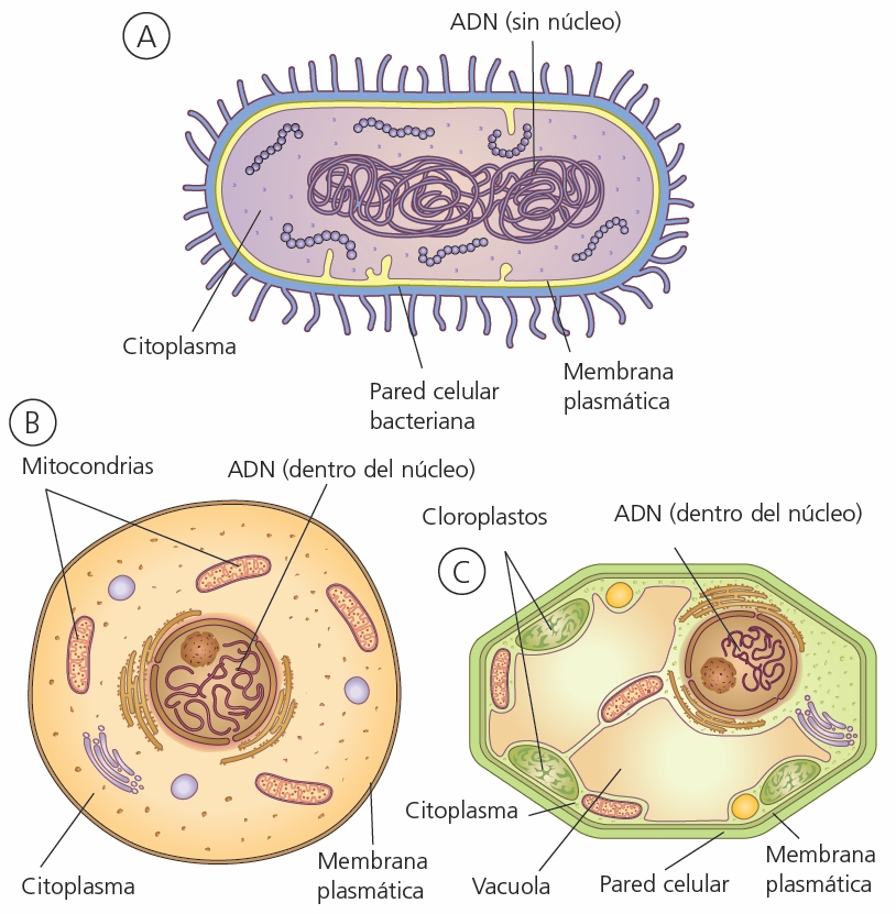 - Averigua dónde se guarda el ADN en las células procariotas y eucariotas.