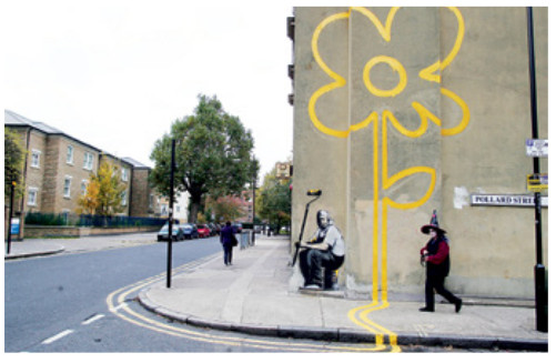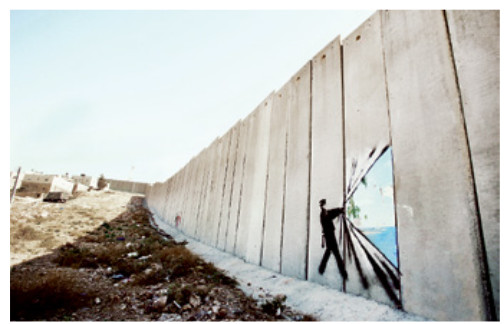El autor de estas imágenes es un artista inglés al que nadie conoce y que firma con el nombre de Banksy. Deja su huella en los muros y es reconocido por su ironía y su defensa de la libertad y la no violencia.