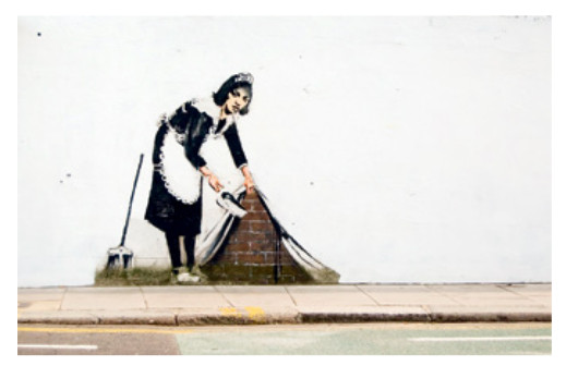 Banksy, cuyos grafitis ya vimos al comienzo de la unidad, utiliza la técnica del estarcido o stencil, con plantillas que coloca encima de los muros y recubre con espray.