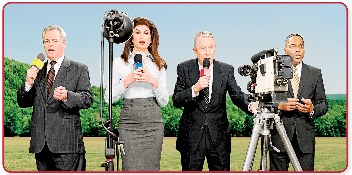 (El telón se abre; de fondo, suena la famosa música televisiva del Telediario. En el escenario vemos una pantalla gigante de televisión; en su interior, muy seria y como las de verdad, LA PRESENTADORA.)