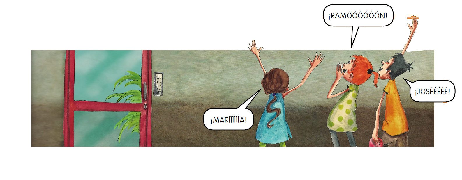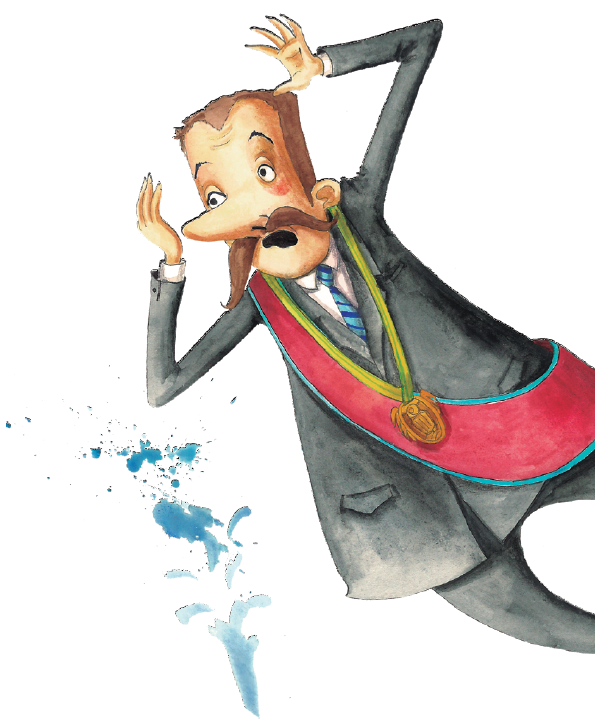 ALCALDE: Gracias al esfuerzo de todos ya tenemos esta bonita fuente en el barrio, por fin veremos manar de ella ese precioso líquido: el... el... (Parece que también se le ha olvidado lo que iba a decir, el ALCALDE se pone nervioso porque todo el barrio le está mirando.) El..., el... (Mira a sus CONCEJALES pidiéndoles ayuda.)