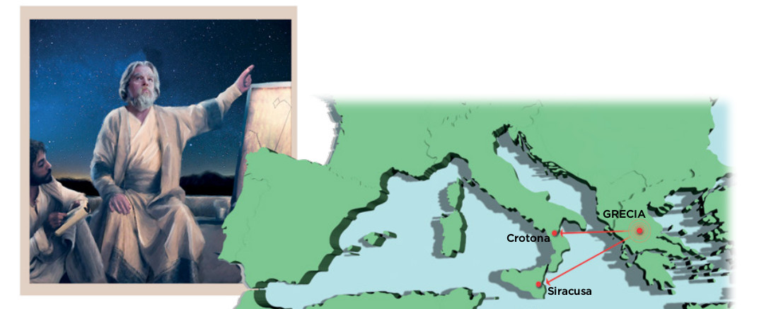 El primer gran teórico de las matemáticas fue Pitágoras. Este griego, gran viajero, acabó asentándose en el sur de Italia, donde fundó una secta místico-científica que rendía culto a la astronomía.