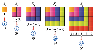 Cualquier número cuadrado se puede expresar como suma de unos cuantos de los primeros números impares.