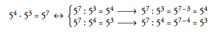 a) a3 · a2 =    b) x5 : x4 =      c) (a3)4 =