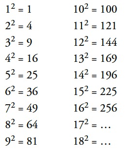 Por ejemplo: 72 = 7 · 7 = 49 → El cuadrado de 7 es 49.