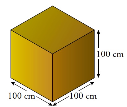 b) Un bloque cúbico de1 000 cm de lado.100 cm de arista.