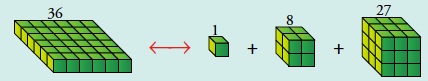 • Busca otro número cuadrado que se pueda expresar como suma de cubos.