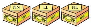 NN → Solo caramelos de naranja. LL → Solo caramelos de limón. NL → Caramelos de naranja y de limón.