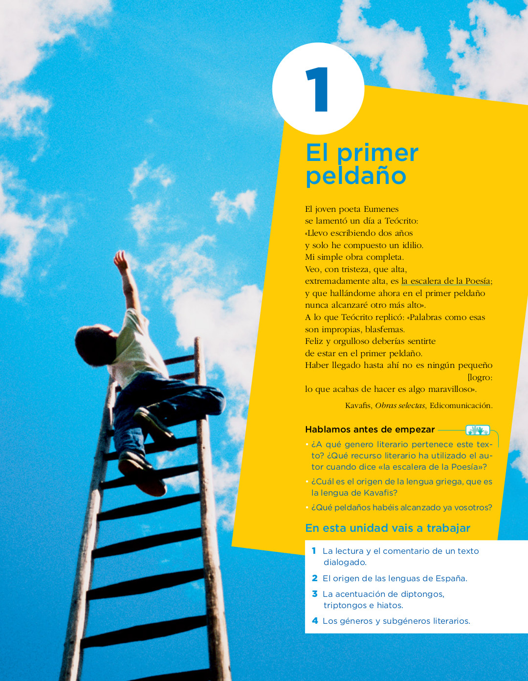 Las sinalefas: cuando una palabra del interior de un verso termina en vocal y la siguiente empieza por vocal forman una sola sílaba métrica («Dichoso el humilde estado»).