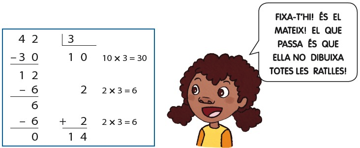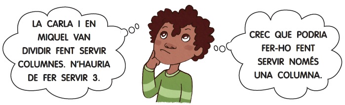 La Carla i en Miquel van dividir fent servir columnes. N'hauria de fer servir 3.