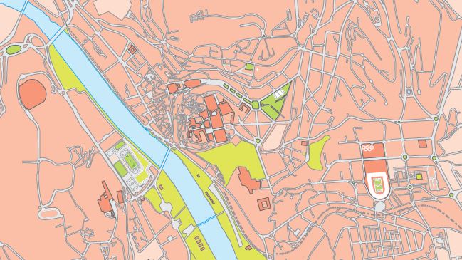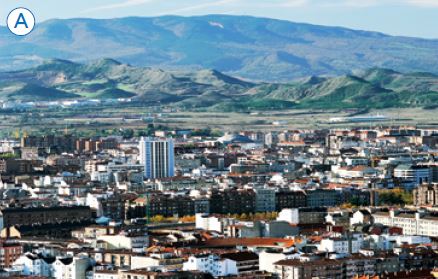 — En la periferia se localizan amplias zonas residenciales. Incluyen algunos barrios de viviendas colectivas para las clases medias y populares; y, sobre todo, extensas áreas de viviendas unifamiliares bien comunicadas con el centro. También se localizan aquí las áreas industriales y algunos servicios, como polideportivos o universidades.