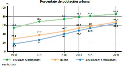 Las estructuras urbanas presentan rasgos muy distintos según la historia y las diferencias socioeconómicas y culturales de los países de las que forman parte. En general, se contraponen la de los países desarrollados, caso de las ciudades norteamericanas y europeas; y la de los países emergentes y atrasados, representada por las ciudades latinoamericanas y africanas.