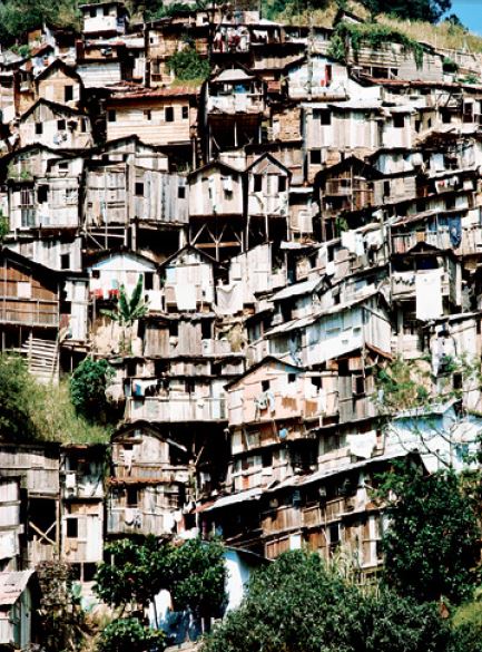 — La periferia está ocupada por extensos barrios de chabolas levantados en laderas abruptas o en zonas insalubres. Son barrios sin infraestructuras ni servicios donde viven los más pobres.