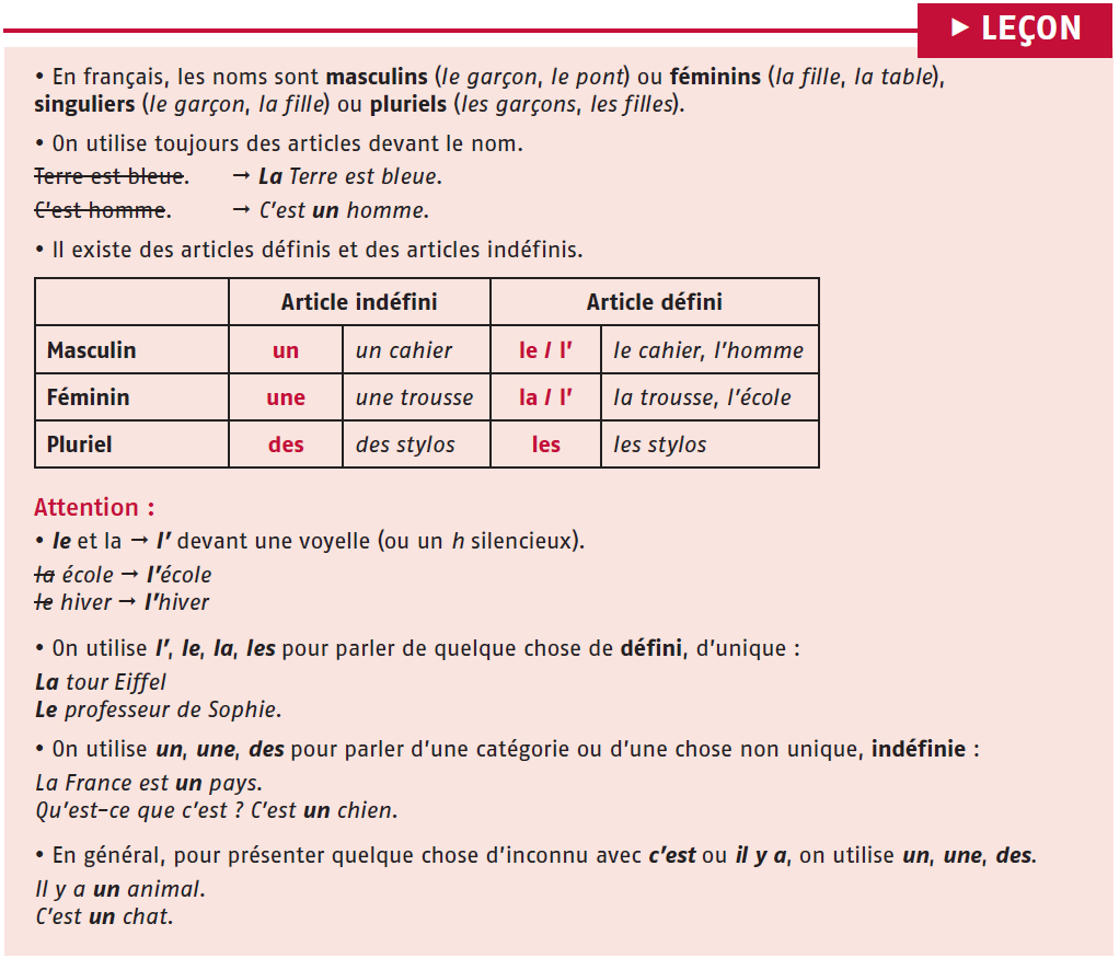 • Les articles définis et indéfinis