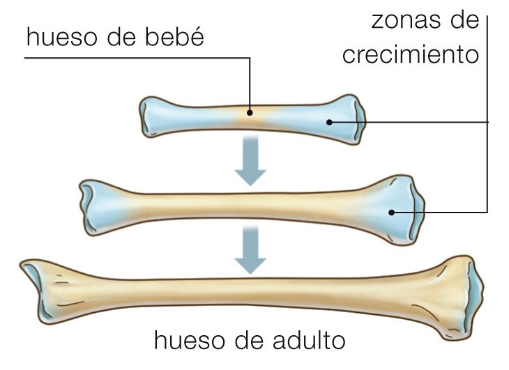 Cuando somos bebés, casi todo el hueso es cartílago. A medida que vamos creciendo, el cartílago del esqueleto se refuerza con sales minerales convirtiéndose en hueso. Este proceso se llama osificación y termina alrededor de los 18 años en los hombres y aproximadamente a los 16 en las mujeres.