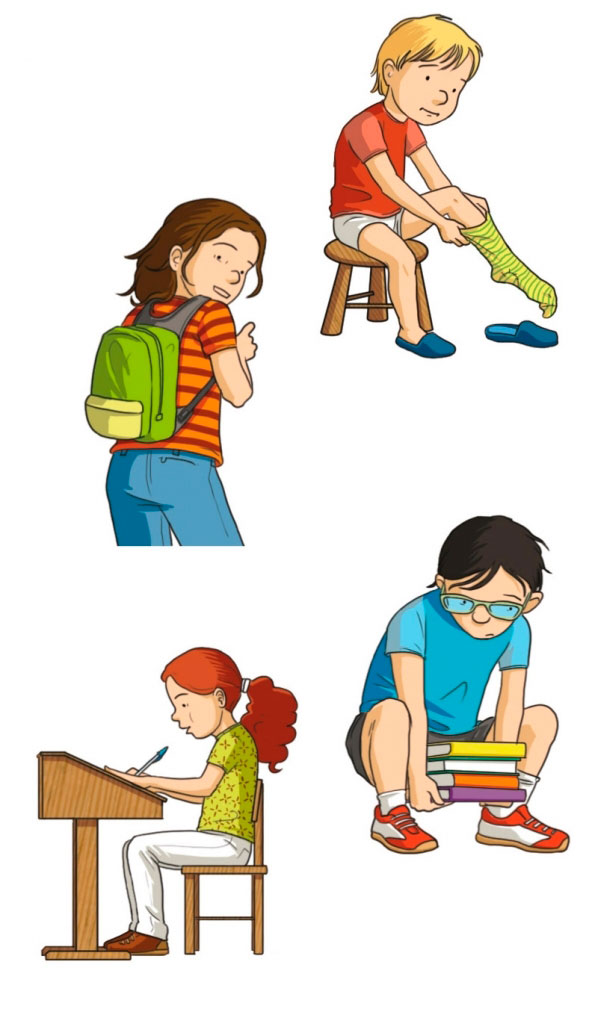 A veces no somos conscientes del tiempo que pasamos en una determinada postura; por ejemplo, sentados en la silla del colegio o delante del ordenador. Cuando cogemos o trasladamos objetos, nos sentamos, caminamos o permanecemos de pie, debemos ser conscientes de nuestra postura para prevenir deformaciones y lesiones. Una mala postura contrae nuestros músculos, fuerza la posición de los huesos y puede causar dolor y daños, principalmente en la columna vertebral y las articulaciones.