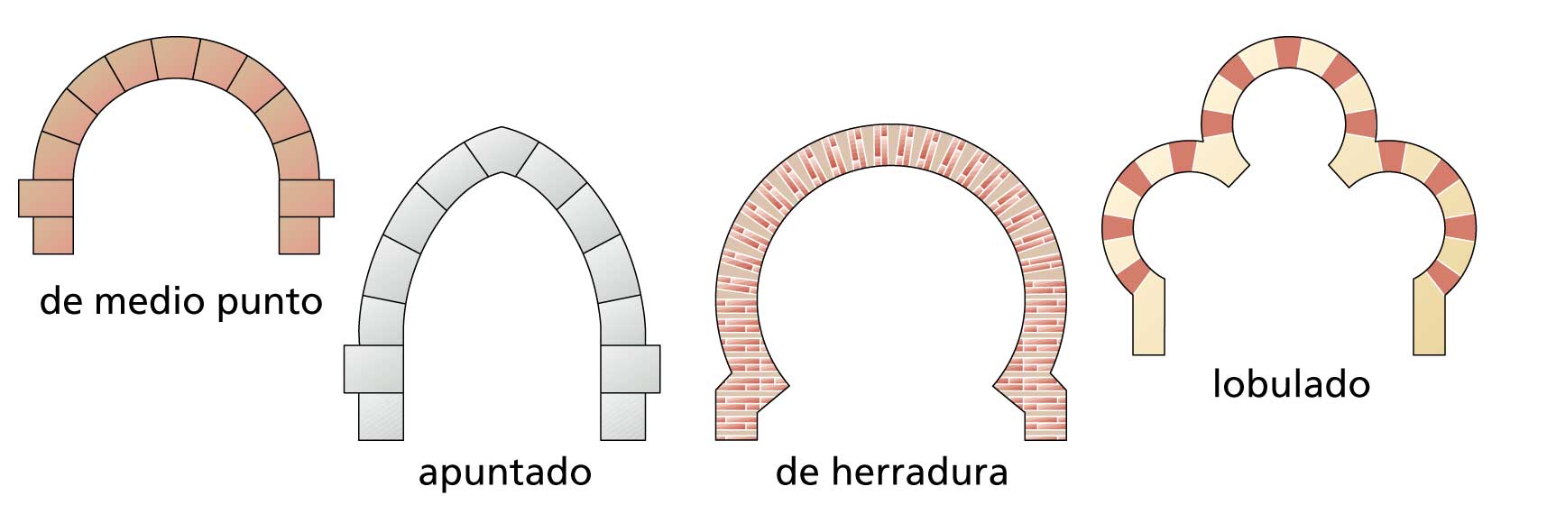 Existen diferentes tipos de arcos según su forma: de medio punto, apuntados, de herradura, carpaneles, lobulados o conopiales, por ejemplo.