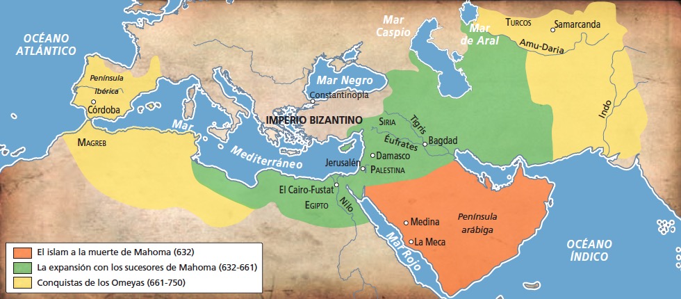 Los sucesores de Mahoma se llamaron califas y el territorio donde gobernaban, califato. Los dominios del califato se extendieron más rápidamente que cualquier otro imperio anterior.
