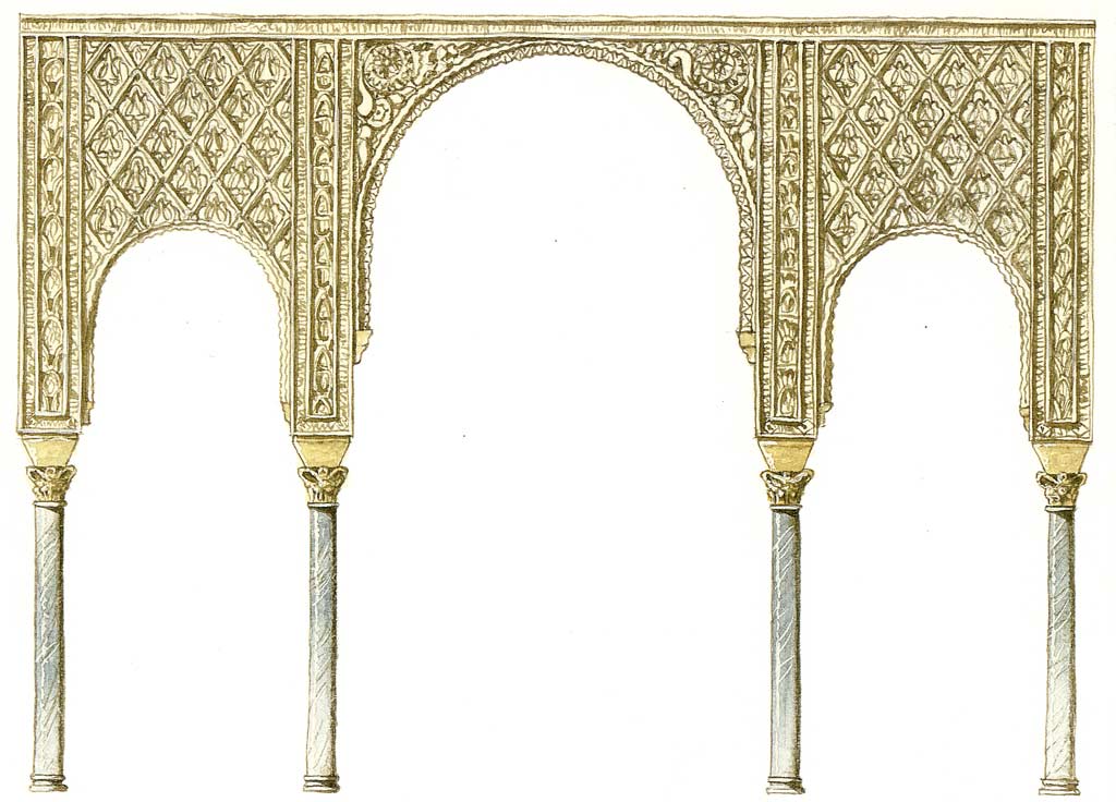 La arquitectura musulmana se caracteriza por el uso de materiales pobres, como el ladrillo, recubiertos de materiales vistosos, como los azulejos, y una rica decoración.