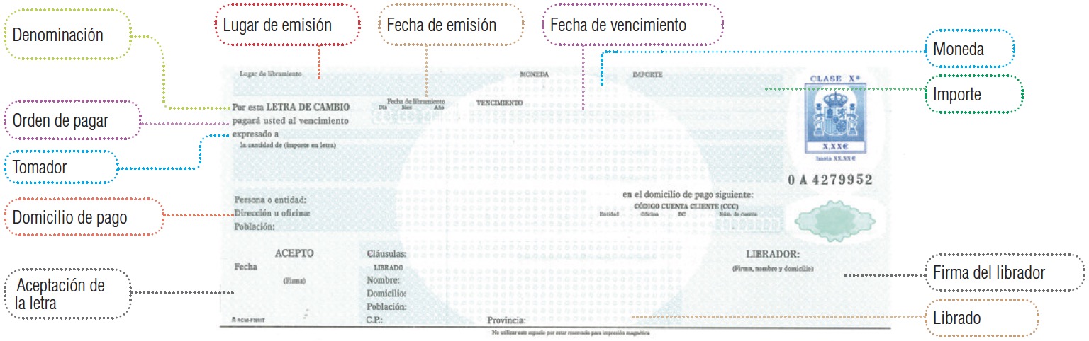 Los datos que deben aparecer en la letra de cambio son los siguientes (Fig. 1.9):