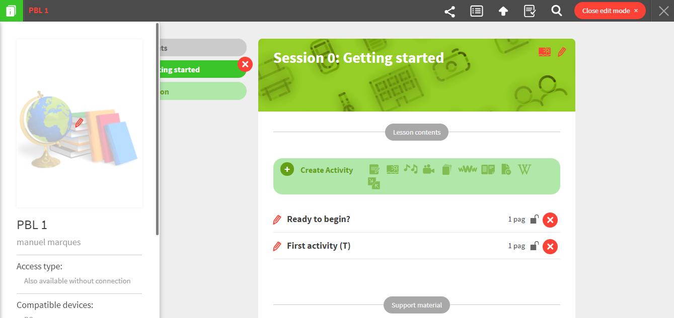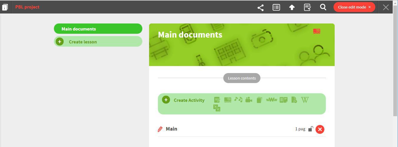 By default, a first lesson will be created – titled “Main documents” - and, inside it, an activity titled “Main”: you can edit this lesson and add more activities such as presentations or featured overviews.