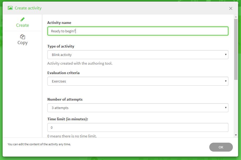 a) To create an activity in the Student’s area select New activity, add a title and click on Ok.