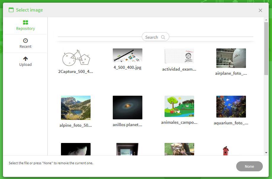 Load an image from BlinkLearning’s Repository or upload one from your computer by clicking on Upload on the left-hand side of the screen.