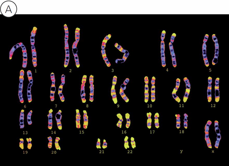 La mayoría de las células humanas contiene 23 pares de cromosomas homólogos. Se llaman así porque los dos miembros de cada par tienen la misma forma y tamaño, y cada uno procede de un progenitor: uno del padre y otro de la madre. Esta dotación cromosómica se denomina diploide y se representa por 2n (2n = 46 cromosomas). Los gametos tienen una dotación haploide (n = 23 cromosomas): solo tienen un miembro de cada par de cromosomas homólogos.