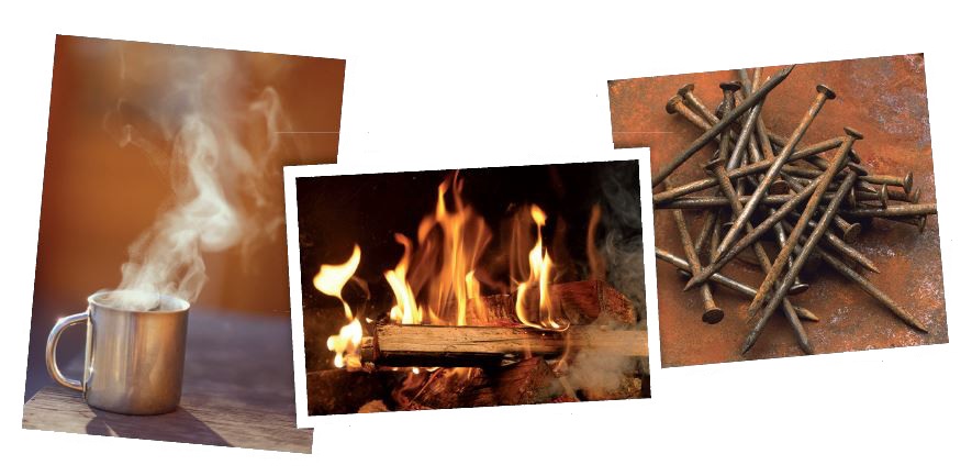 D'altra banda, si observes el teu voltant veuràs que la matèria canvia contínuament, com ara a la natura, on el pas de les estacions comporta un munt de canvis fascinants. Però més a prop, com per exemple a la cuina de casa en coure els aliments, o a l'interior d'un cotxe quan s'engega el motor, quins canvis es produeixen? I encara més a prop, dins del teu organisme, què passa quan respires? Una vegada més, hem d'anar a l'interior de la matèria per conèixer la naturalesa d'aquests canvis.