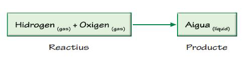 Per exemple, l'oxigen en estat gasós es pot fer reaccionar amb l'hidrogen en estat gasós i se n'obté aigua. L'oxigen i l'hidrogen són els reactius, mentre que l'aigua és el producte de la reacció.