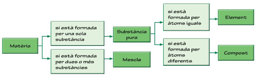 Per tal d'estudiar la matèria i les seves propietats, podem classificar la matèria en dos tipus, segons si està constituïda per una única substància o bé per dues o més substàncies diferents.