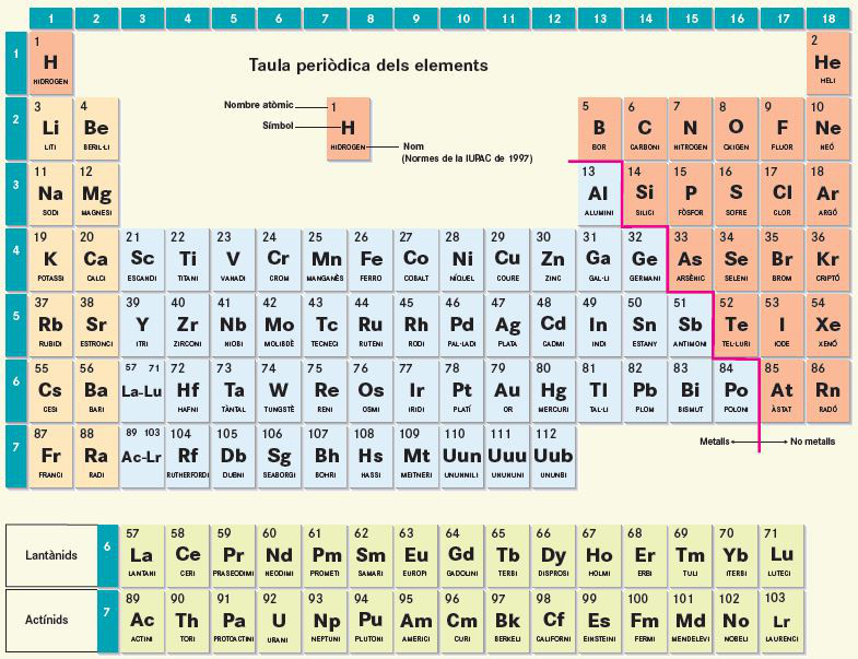 Els diferents elements que coneixem es classifiquen en la denominada taula periòdica dels elements. En aquesta taula els elements s’ordenen per ordre creixent d’acord amb el seu nombre atòmic i s’agrupen segons les seves característiques i propietats físiques i químiques.