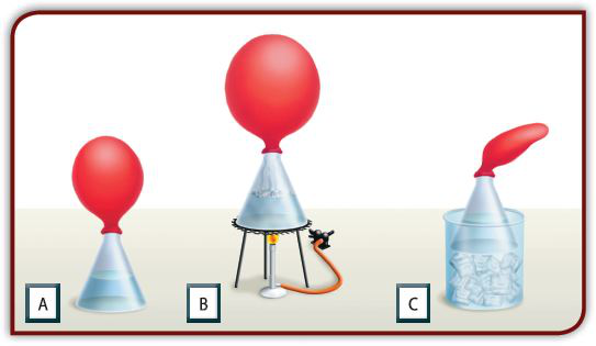 2.20. Utilitzant models moleculars per representar les partícules, dibuixa en els recipients l’aigua en cadascun dels tres estats físics: sòlid, líquid i gas.