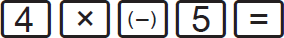 Para introducir números negativos en las calculadoras científicas, usamos la tecla . Según el modelo de calculadora que utilicemos la forma de introducirlos es diferente. Por ejemplo, para realizar la operación (+4) ⋅ (−5), pulsamos: