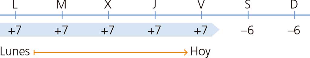 Claudia quiere ahorrar para comprar unos patines. Decide que de lunes a viernes meterá 7 € al día en su hucha, y el fin de semana, sacará 6 € cada día.