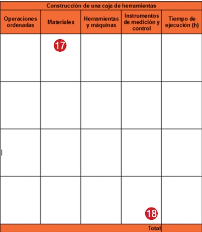 - Hoja de proceso. Contiene el orden de construcción de las piezas que componen el objeto y especifica: